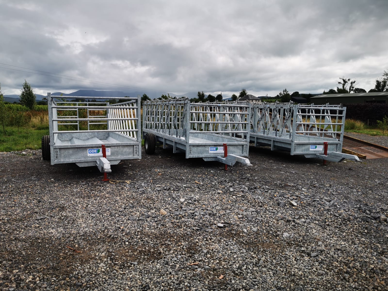 Galvanised 16ft x 8ft Feed Trailers with self-lock barriers